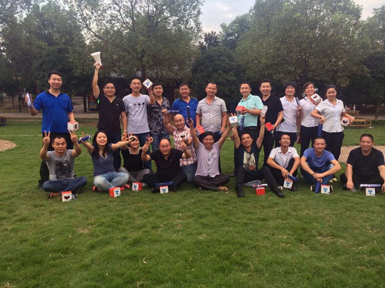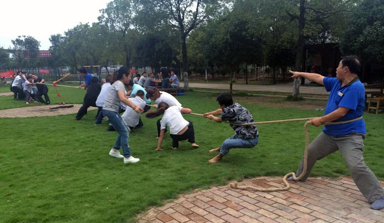 本次素質拓展為兩隊對抗,分別完成三個項目比賽,依次是集體跳繩、過山車和拔河。集體跳繩考驗每個隊員的配合度,團隊中只要有一人失誤,整個項目就得重新開始;過山車項目體現(xiàn)的是方向控制、協(xié)同作戰(zhàn)在團隊中的重要性;拔河則是雙方力量的對比。兩隊人馬竭盡全力在草地上拚搏,周圍加油聲、喝彩聲響徹云霄。經(jīng)過兩小時的激烈角逐,以宋惠鋒為隊長的一隊最終取得勝利。