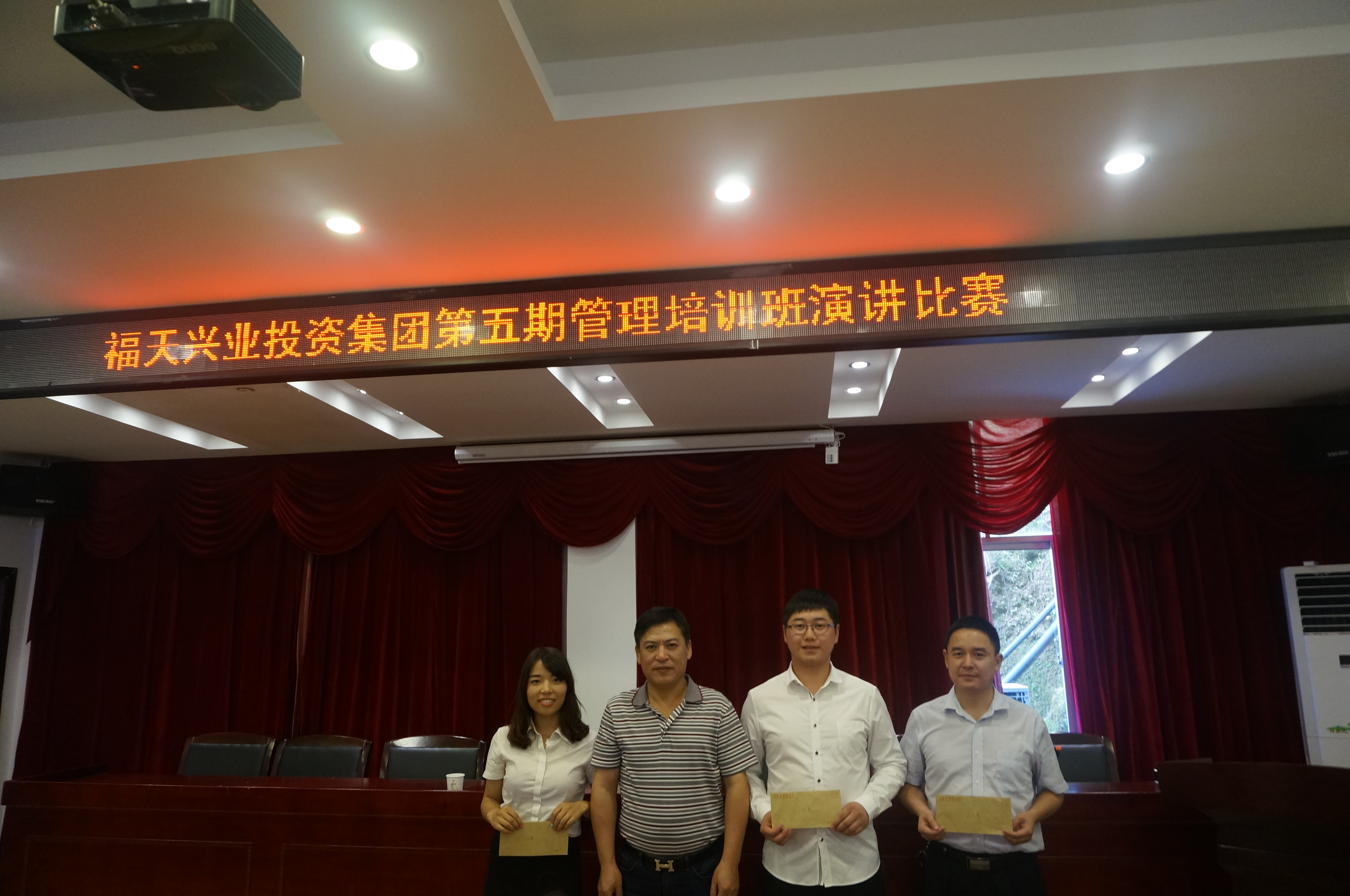 下午2時,集團(tuán)副總裁王巨濤主持召開管理培訓(xùn)班即興演講比賽。經(jīng)過初賽、復(fù)賽共三個小時的激烈角逐,前三名最終由營銷中心李紅武、九方環(huán)保傅強(qiáng)、人力資源部王悅?cè)〉?,集團(tuán)總裁蔣衛(wèi)山對獲獎學(xué)員進(jìn)行了頒獎,并勉勵學(xué)員們要刻苦學(xué)習(xí),努力提升自己。