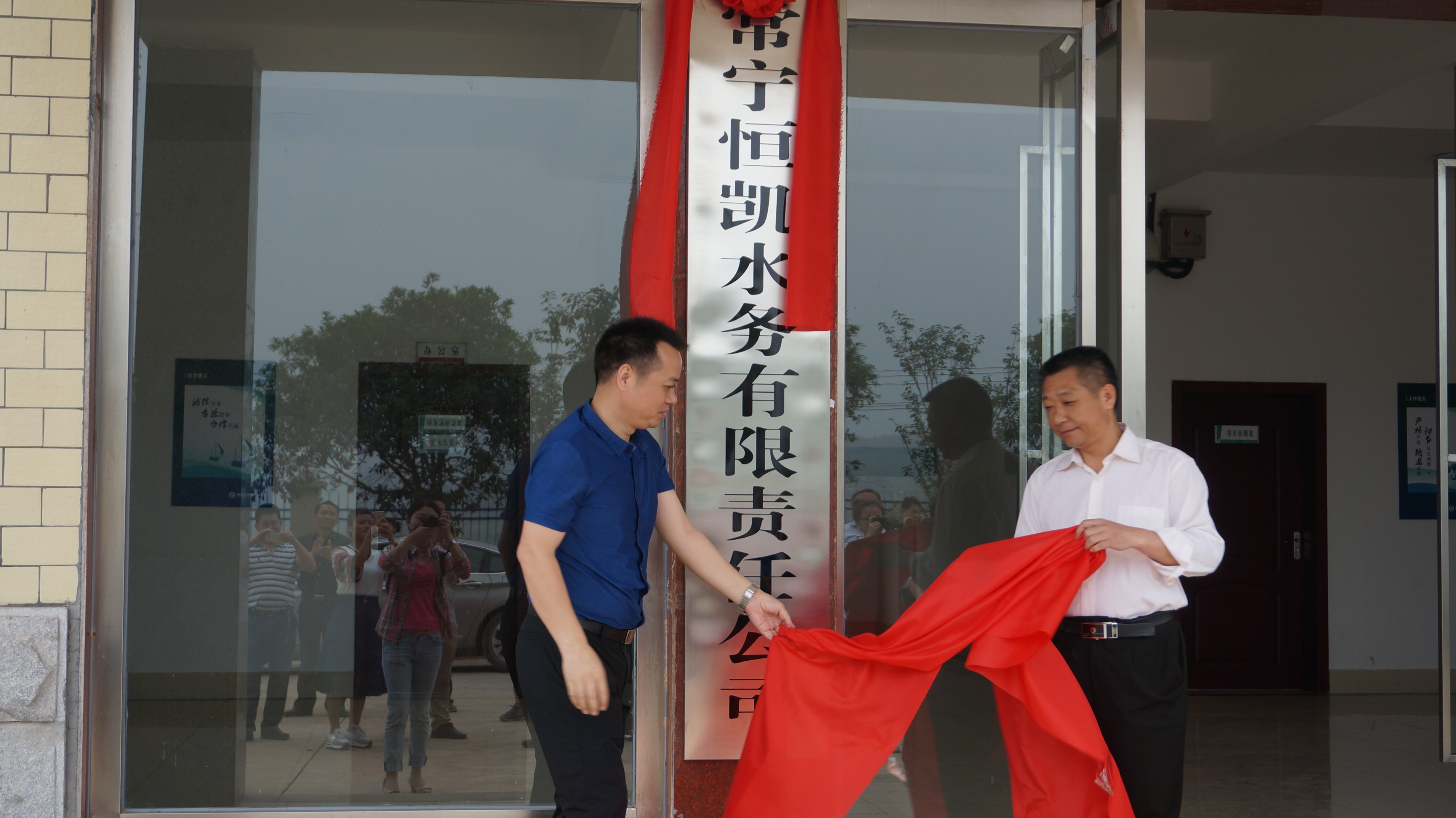 6月2日,常寧恒凱水務(wù)有限責(zé)任公司暨常寧市松柏生活污水處理廠隆重舉行揭牌儀式,這標(biāo)志著松柏生活污水處理廠正式投入運行。常寧市領(lǐng)導(dǎo)李新華、張昕、吳文明及我公司副總裁許國生出席揭牌儀式,共同為松柏污水廠揭牌。