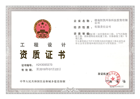 我公司申報(bào)的工程設(shè)計(jì)—環(huán)境工程(污染修復(fù)工程專(zhuān)項(xiàng)乙級(jí))資質(zhì)于2016年7月26日在湖南省住房和城鄉(xiāng)建設(shè)廳公告宣布已通過(guò)。