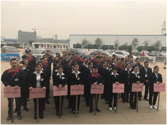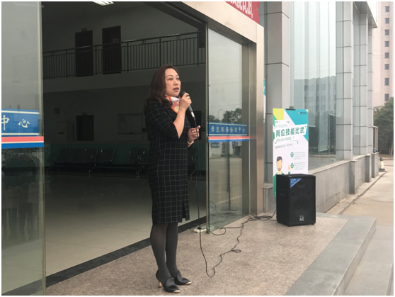 湖南恒凱工會(huì)主席尾氣運(yùn)營(yíng)中心總經(jīng)理陳敏為技能比賽啟動(dòng)儀式致辭