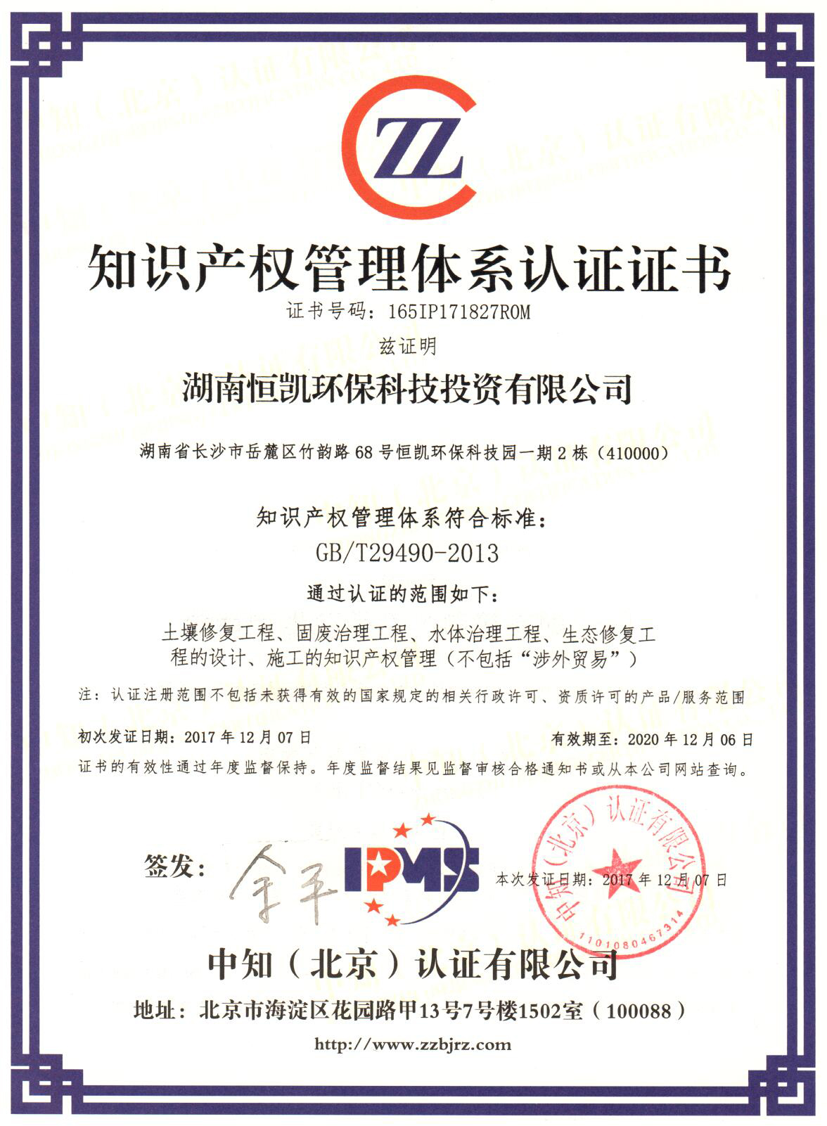 11月29日,恒凱環(huán)保舉行了知識(shí)產(chǎn)權(quán)管理體系初次認(rèn)證二階段審核,經(jīng)專家認(rèn)真審核與嚴(yán)格把關(guān),公司順利通過了中知(北京)認(rèn)證有限公司認(rèn)證,并于12月7日榮獲GB/T29490-2013《知識(shí)產(chǎn)權(quán)管理體系認(rèn)證證書》,這表明公司在知識(shí)產(chǎn)權(quán)領(lǐng)域已經(jīng)形成了一套完整的管理體系。