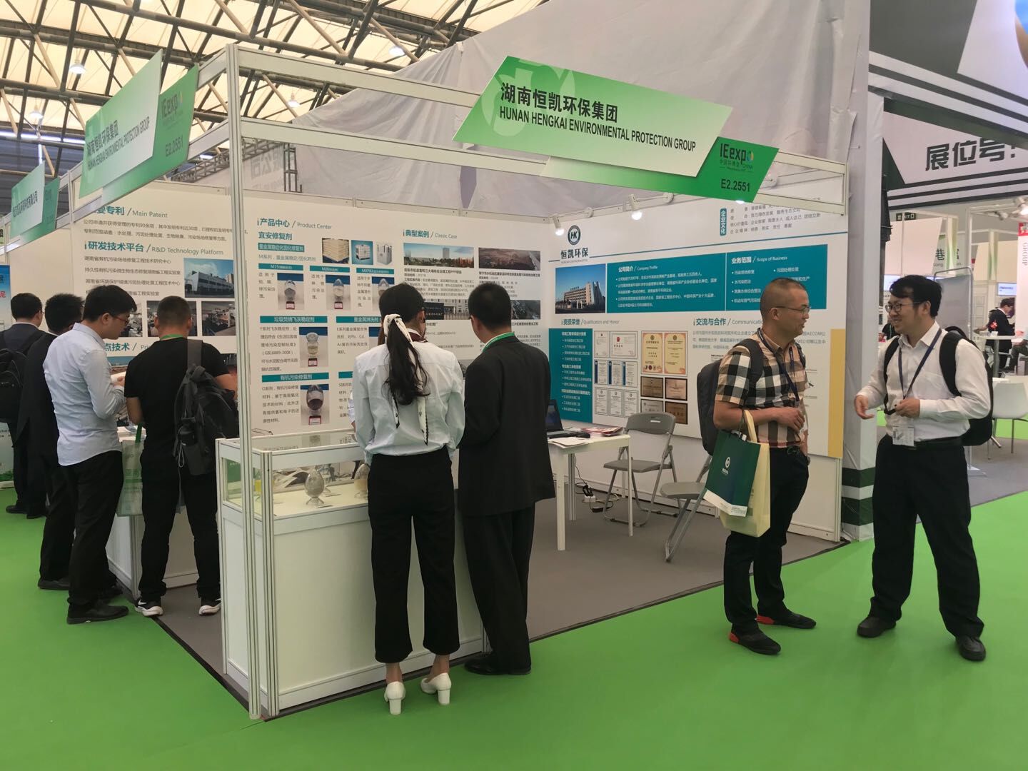恒凱環(huán)保的展位位于E2-2551,精致的展位布局展示了公司的基本情況、自主研發(fā)的產(chǎn)品、技術(shù)和典型項(xiàng)目案例,吸引了眾多國(guó)內(nèi)外客戶駐足觀看。工作人員就產(chǎn)品和相關(guān)技術(shù)解決方案與前來(lái)我公司展位參觀交流的客戶進(jìn)行溝通,并詳述了修復(fù)劑產(chǎn)品和技術(shù)在市場(chǎng)的優(yōu)勢(shì),現(xiàn)場(chǎng)交流互動(dòng)不斷。參觀人員對(duì)我公司修復(fù)劑產(chǎn)品以及土壤修復(fù)和場(chǎng)地修復(fù)技術(shù),污水處理工藝等進(jìn)行了深入了解并給予高度評(píng)價(jià),期待能進(jìn)一步探討技術(shù)與合作。