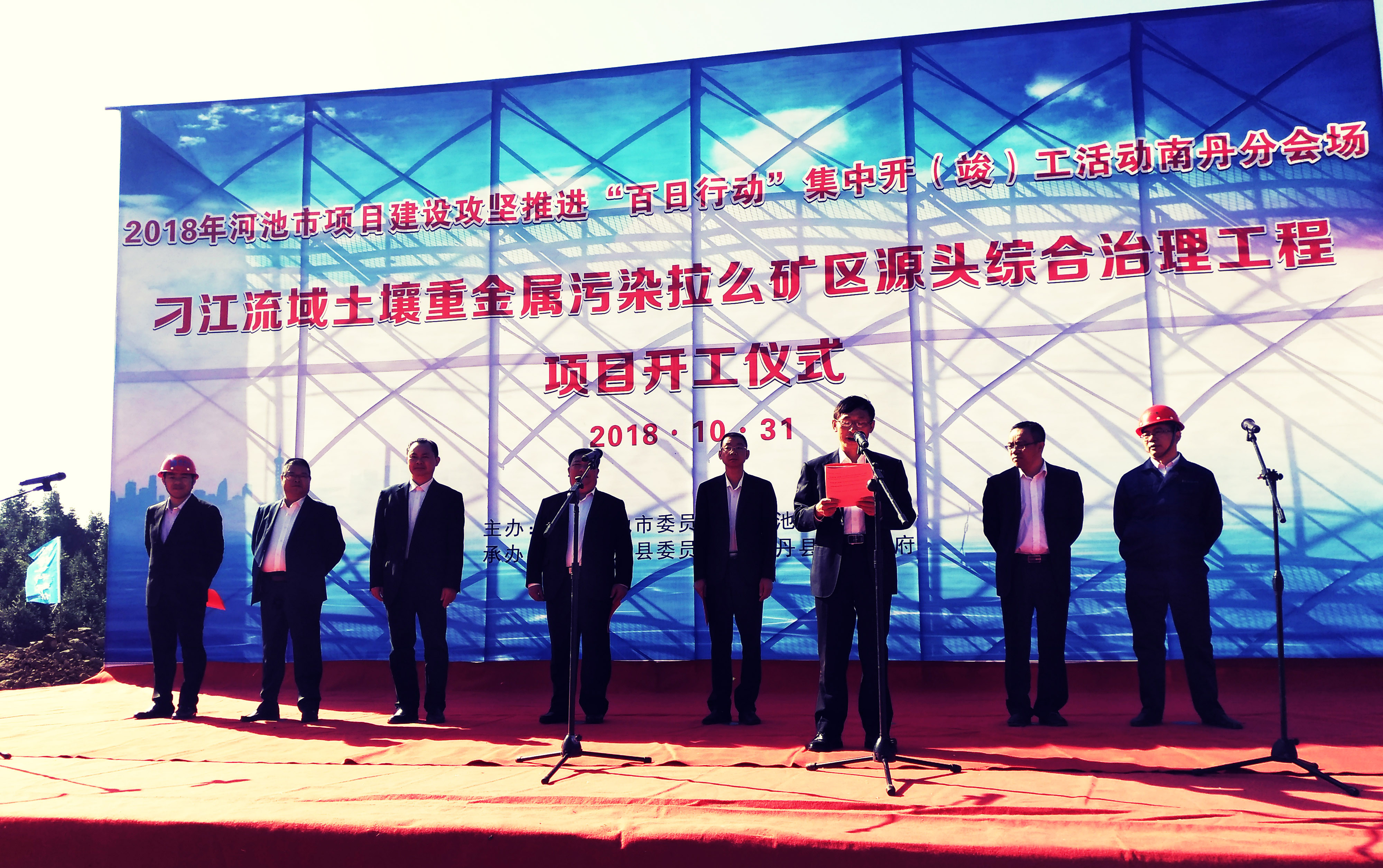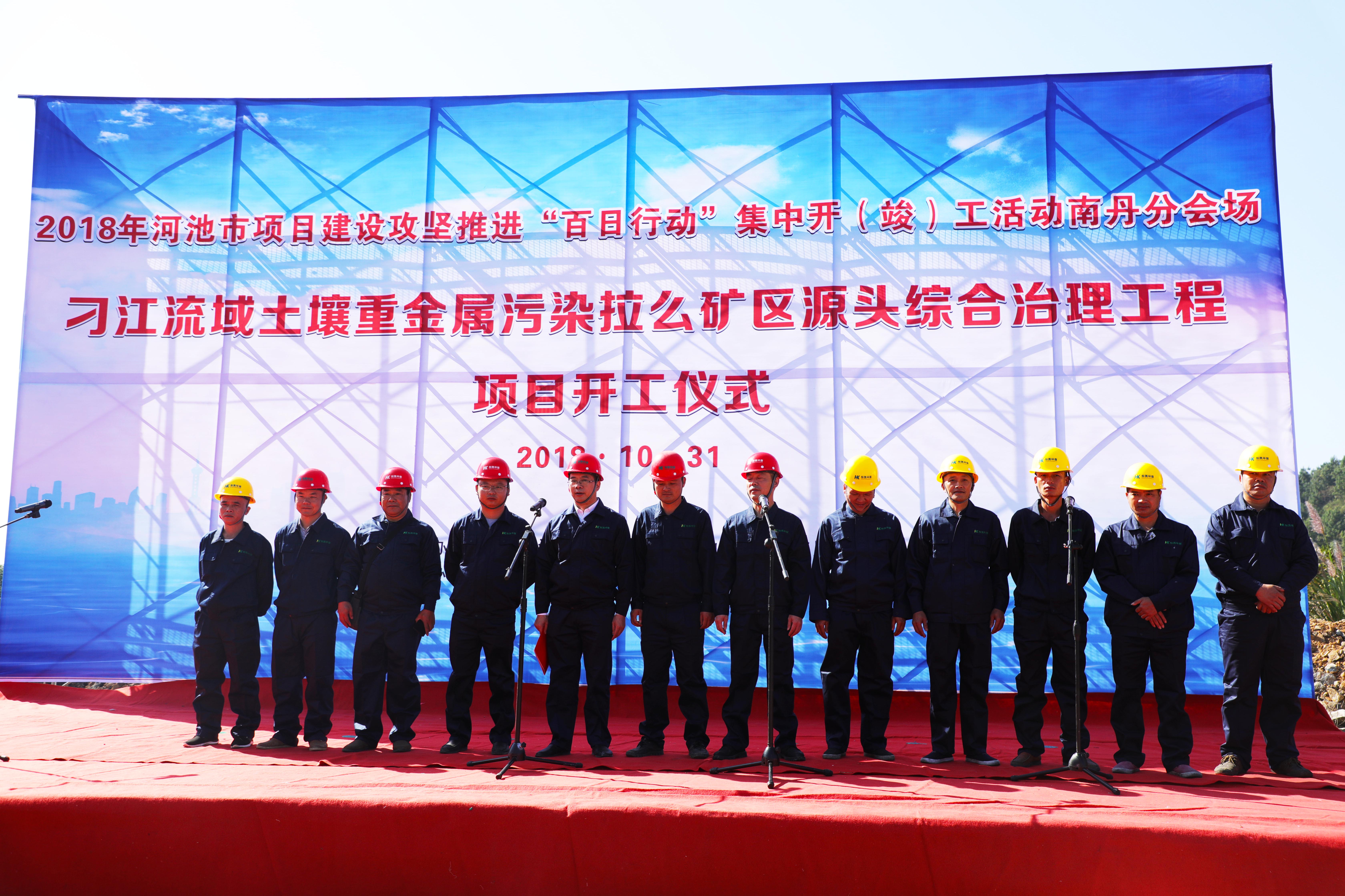 10月31日,秋高氣爽,晴空萬里,湖南恒凱環(huán)保集團(tuán)承建的廣西南丹刁江流域土壤重金屬污染拉么礦區(qū)源頭綜合治理工程(2標(biāo)段)喜迎開工,刁江項(xiàng)目部全體參建人員著裝整齊、意氣風(fēng)發(fā)地參加了項(xiàng)目開工慶典。南丹縣政協(xié)主席梁瀚文、縣委副書記莫曉明、政法委書記黃幸樂、人大副主任繆芝龍、政協(xié)副主席莫少敏、環(huán)保局副局長李方、湖南恒凱環(huán)保集團(tuán)領(lǐng)導(dǎo)莫唐文一同出席了開工典禮。