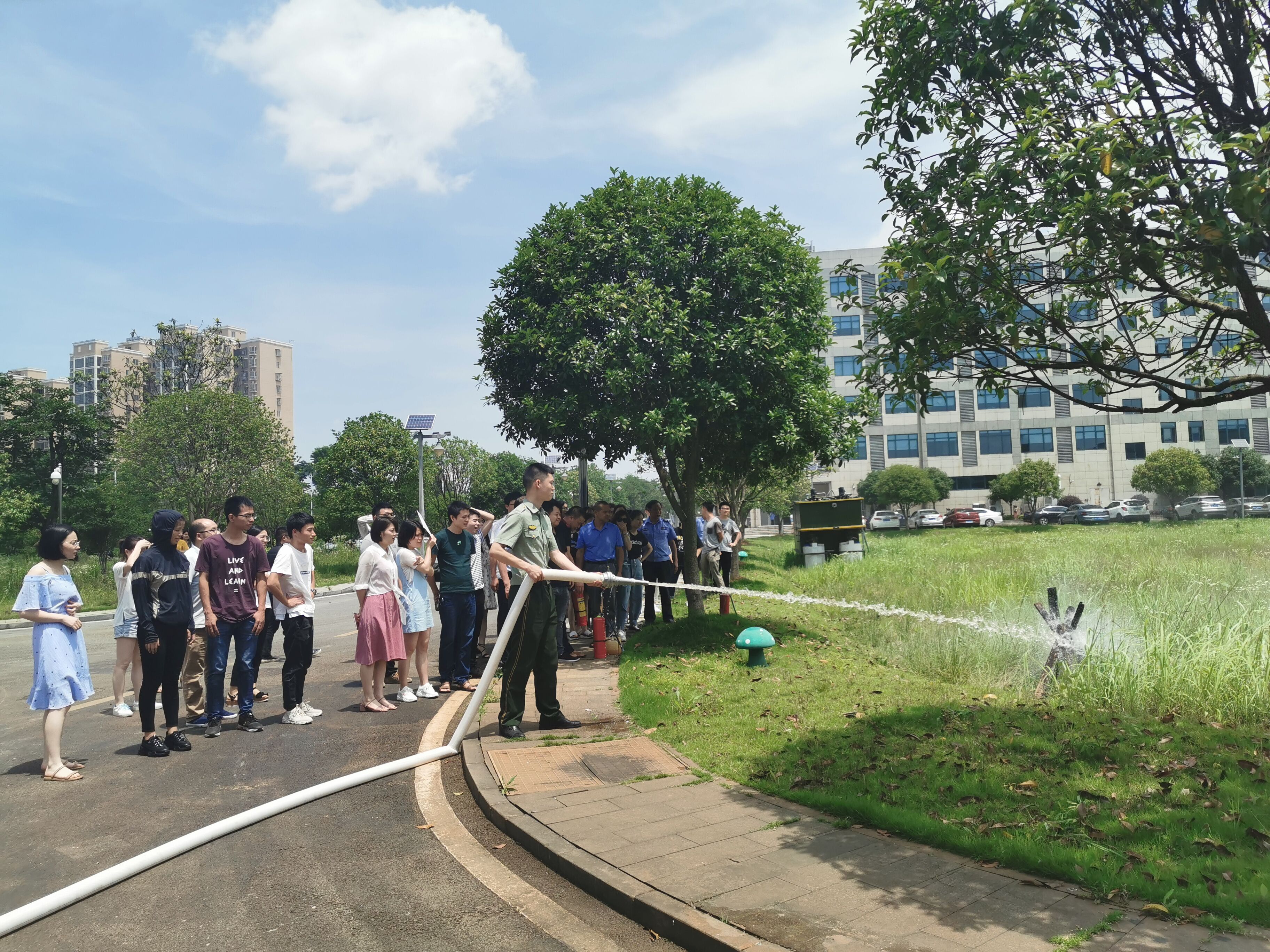 在辦公樓火災(zāi)逃生安全演練環(huán)節(jié),全體員工回到辦公室,當聽到消防警報系統(tǒng)發(fā)出預(yù)警后,大家克服了緊張畏懼情緒,用濕毛巾或手帕捂住口鼻,彎腰按照安全疏導(dǎo)逃生路線有秩序的迅速穿過煙霧區(qū),成功撤離辦公樓。最后,全體員工在藥劑廠前坪學習了滅火器和消防水槍的使用。