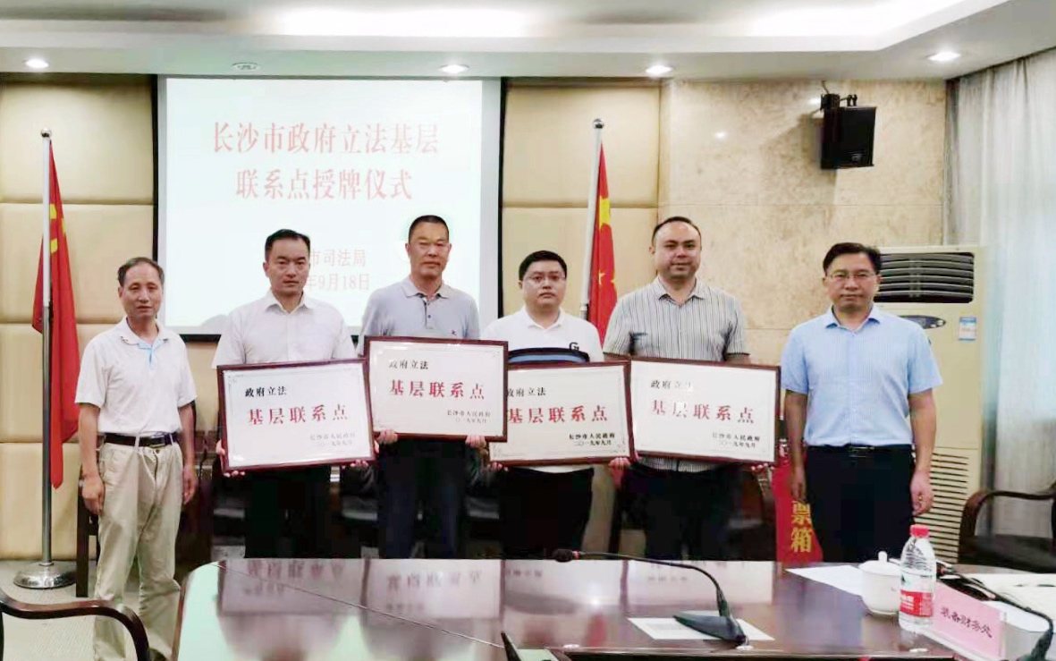 9月9日,長沙市人民政府批準同意湖南恒凱環(huán)保科技投資有限公司等4家行業(yè)協(xié)會和企業(yè),作為新增政府立法基層聯(lián)系點。9月18日,長沙市司法局為新增的政府立法基層聯(lián)系點進行授牌,市人大法制委主任委員、市人大黨委會法工委主任周偉,市司法局黨委委員、副局長楊建輝分別為4個政府立法基層聯(lián)系點授牌。至此,長沙市政府立法基層聯(lián)系點由3個擴充到7個。
