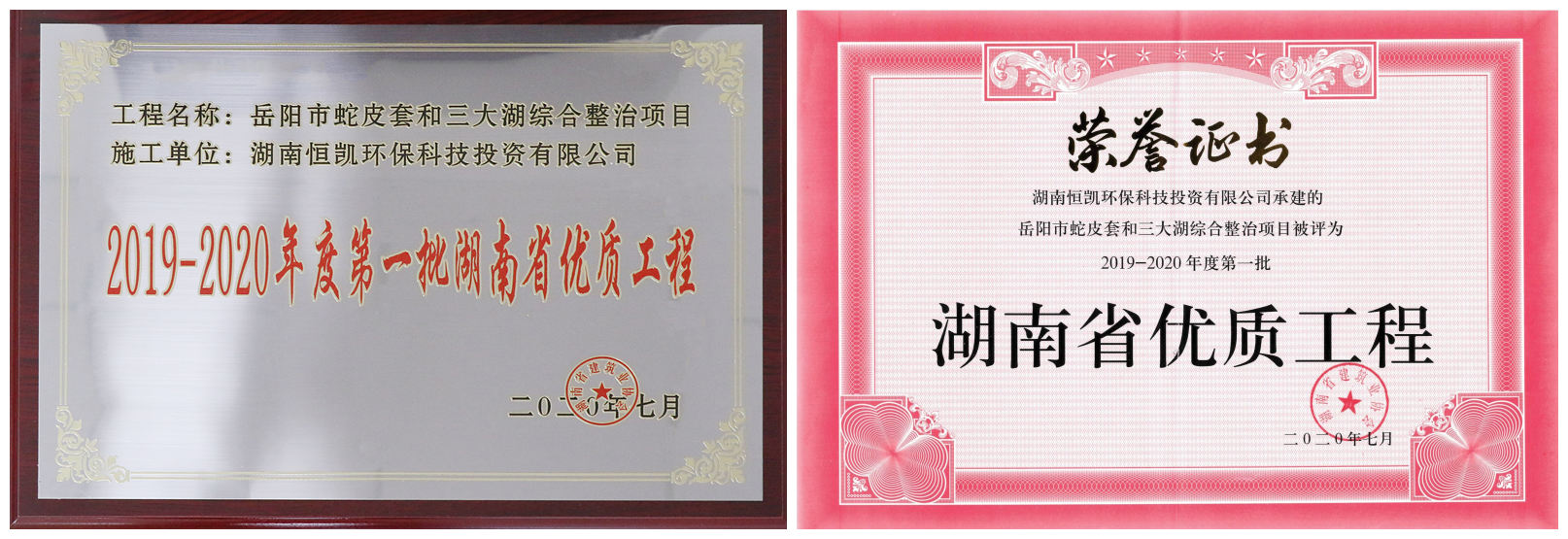 近日,由恒凱環(huán)保參與建設(shè)的岳陽(yáng)市蛇皮套和三大湖綜合整治項(xiàng)目被評(píng)為“湖南省優(yōu)質(zhì)工程”。這是該項(xiàng)目繼獲評(píng)2019年度岳陽(yáng)市優(yōu)質(zhì)工程之后,獲得的又一殊榮,既是政府和社會(huì)各界對(duì)公司工程質(zhì)量的高度認(rèn)可,也為公司以質(zhì)量取勝、以信譽(yù)立足市場(chǎng)打造行業(yè)精品工程錦上添花。